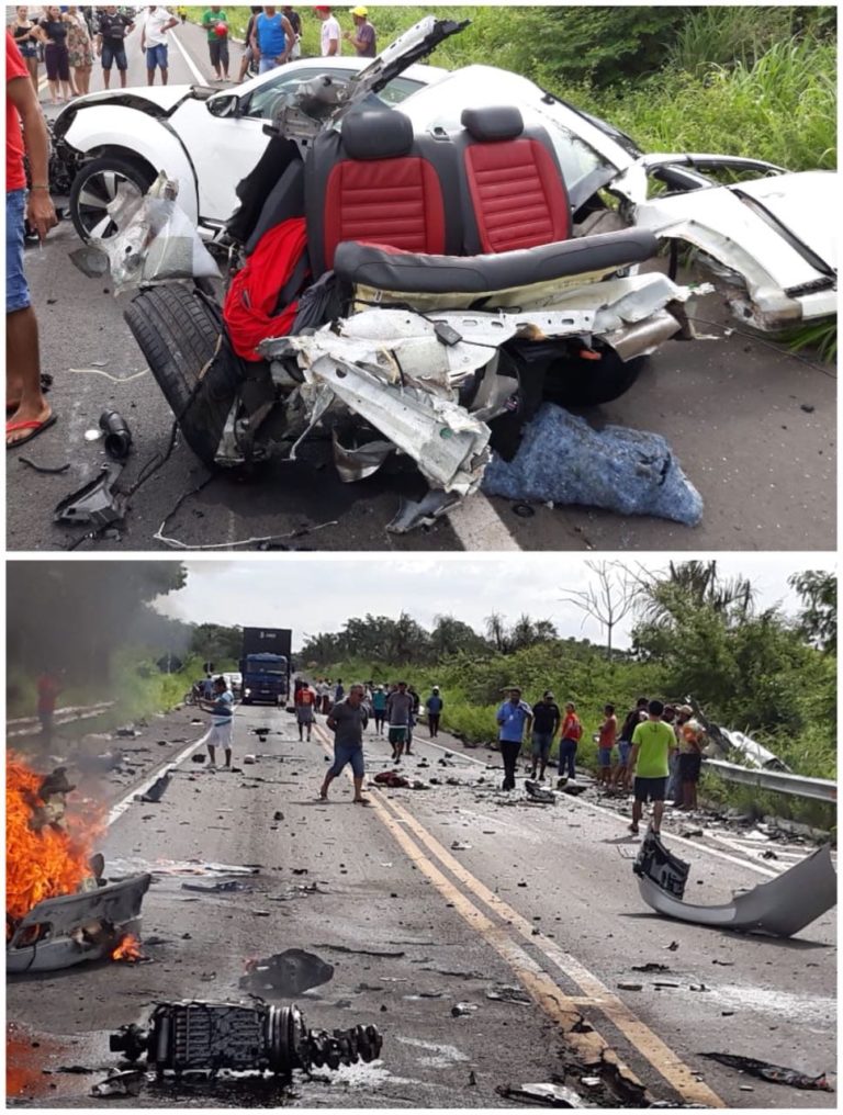 Policiais da PRF estiveram no local e constataram que os automóveis ficaram destruídos, esfarelados no asfalto da rodovia.