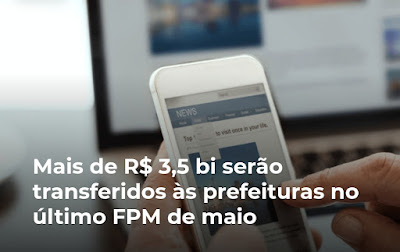 De acordo com a CNM, o terceiro e último repasse do mês será de R$ 2.810.423.800,31, descontada a retenção constitucional de 20% do Fundo de Manutenção e Desenvolvimento da Educação Básica e de Valorização dos Profissionais da Educação (Fundeb). O valor foi calculado a partir da base dos dias 11 a 20 do mês, e decêndio representa em torno de 30% do FPM total de maio.